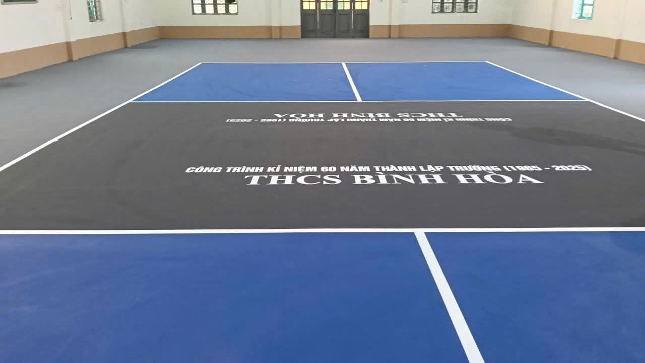 Thực hiện kế hoạch thu chi nguồn quỹ ủng hộ từ các đại biểu khách mời, các thế hệ thầy, cô giáo và các thế hệ học sinh hướng tới Lễ kỉ niệm 60 năm ngày thành lập trường (1965 – 2025). Được sự nhất trí của chính quyền địa phương và đại diện các khoá học sinh, trường THCS Bình Hoà đã triển khai thi công sân Pickeball và nâng cấp sàn nhà đa chức năng phục vụ hoạt động TDTT của thầy và trò nhà trường.